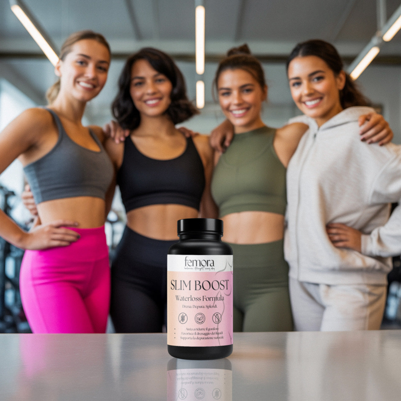 FEMORA SLIM BOOST è il nuovo integratore drenante naturale studiato per aiutare il corpo ad eliminare i liquidi in eccesso, favorire il benessere del sistema urinario e sostenere la linea.